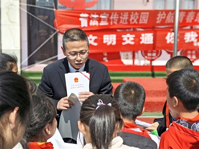 四十铺法庭法官进校园开展未成年人保护专项普法宣传活动。徐蕊摄