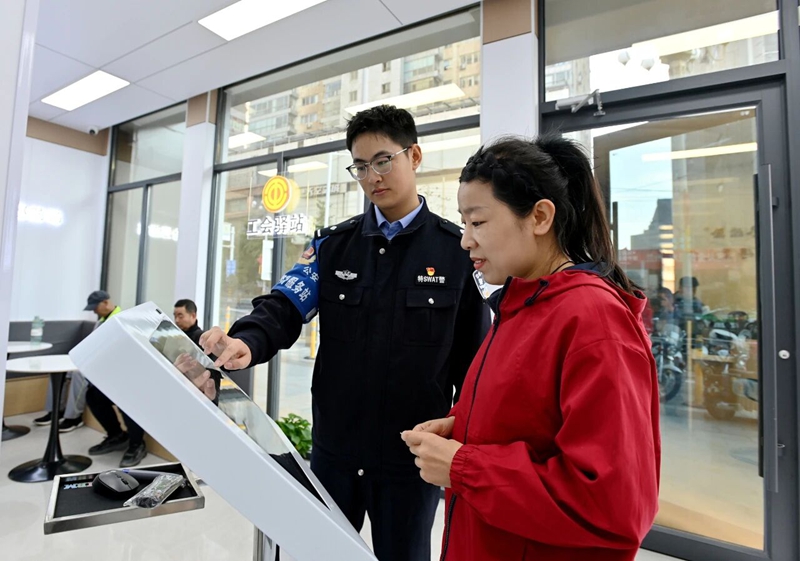警务站既是安全堡垒,更是服务窗口。站内“AI服务站”依托先进的业务模型和专业人工讲解,为群众提供自助查询、业务办理、法律咨询、纠纷调解等服务。同时,休息、饮水、热饭、急救、充电、失物招领等暖心服务一应俱全,并通过“家事直说站”“联合巡防站”“工会驿站”广泛收集社情民意,持续优化服务体验,全力构建公安服务“15分钟便民生活圈”,既织密了治安防控网,又架起了警民连心桥。