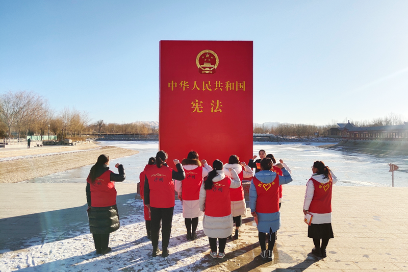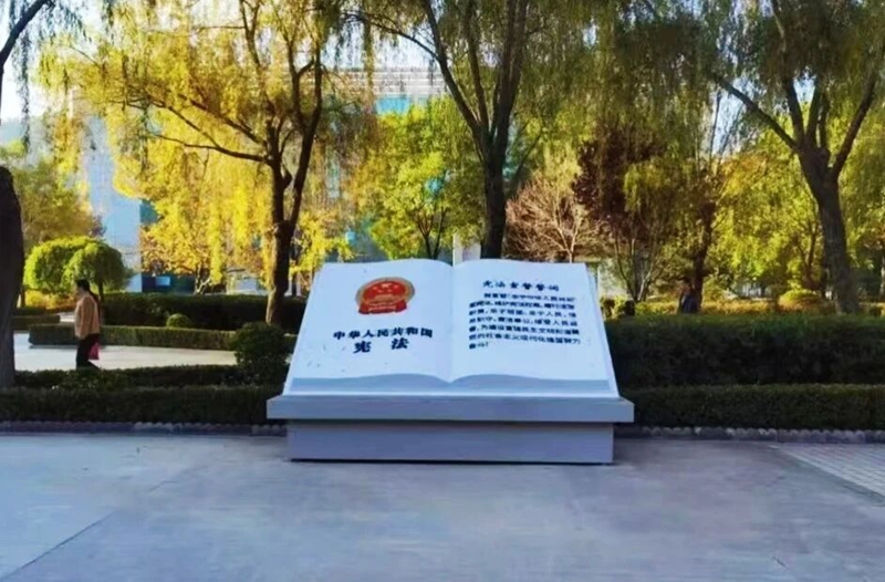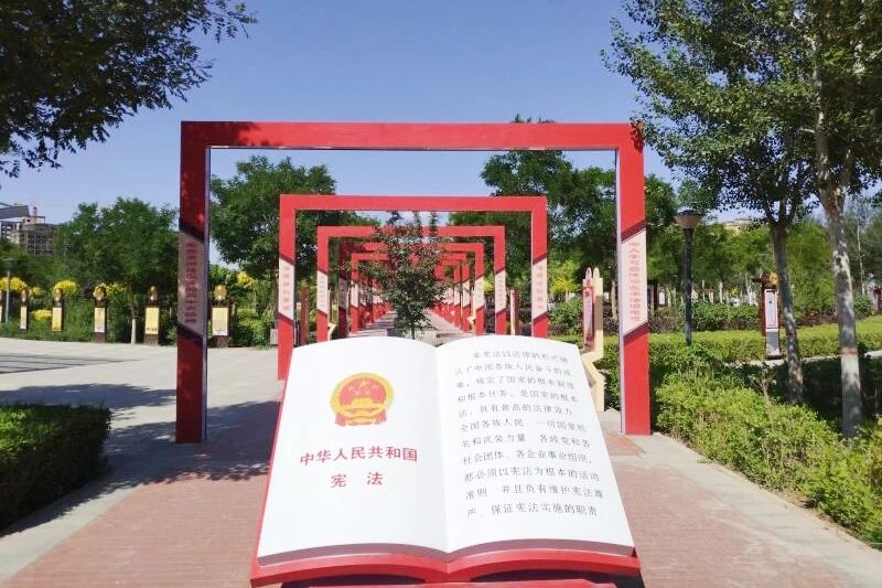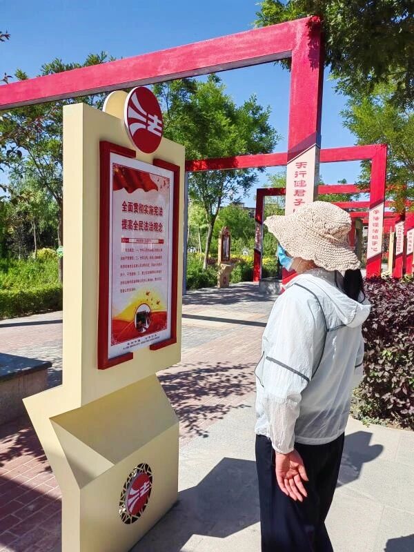 在临夏州永靖县古城新区彩陶广场内,宪法主题公园和主题街道让法治元素与自然、人文景观巧妙交织,在赋予公园深厚法治文化底蕴的同时,将宪法知识、法言法语等法治元素“住”进了优美风景,使群众在休闲娱乐的过程中领略法治文化、感受宪法精神。在这里,永靖县司法局开展了一场以“学习宣传贯彻习近平法治思想 推动宪法深入人心”为主题的宪法宣传活动,将法治的种子播撒到了群众的心中。