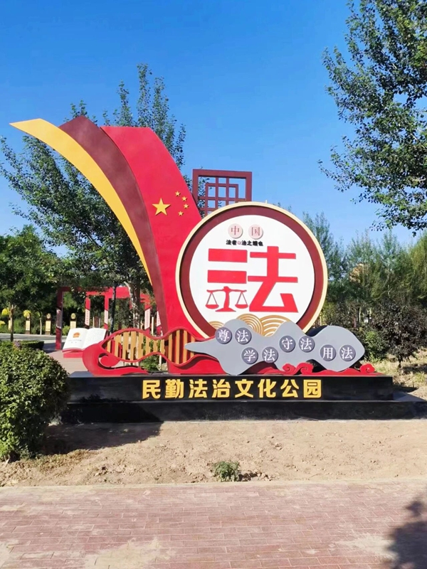 在民勤县城北新区的人民公园一角,法治悄然“生长”。在人民公园原有自然景观的基础上,大量的法治文化元素,通过景观造型、装饰艺术等手法,将法治文化融入公园风景。散步时抬头可见法治标语,休憩时能细读法律故事,让尊法学法守法用法的良好氛围,深深扎根在群众心中。