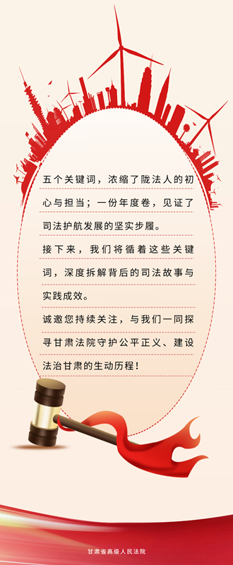 发展需要稳定环境,法治就是最好的保障。我们不做司法“旁观者”,主动立足职能找准服务切入点,聚焦商事纠纷、知识产权保护、生态环境治理等关键领域,用公正裁判厘清规则、明晰边界,以府院联动凝聚合力、破解难题,全力把司法服务送到发展最需要的地方,让法治成为陇原经济社会高质量发展的“稳定器”与“助推器”。