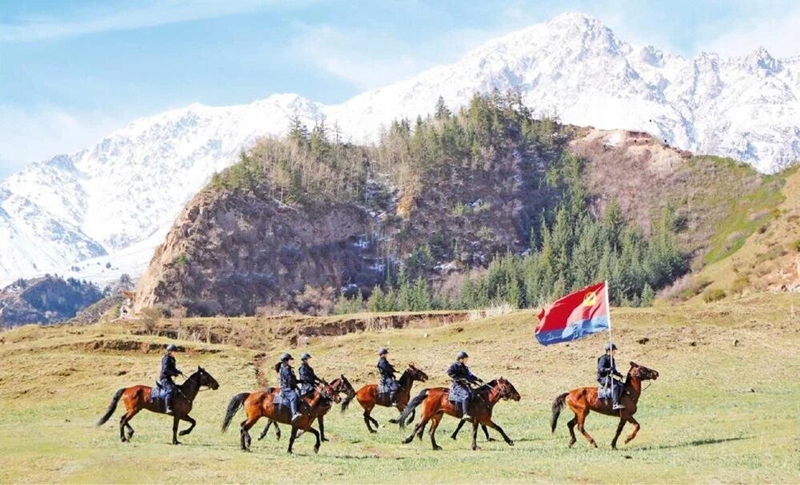 甘肃省肃南县公安局骑警队在马蹄生态文化旅游区开展巡逻。(资料图)