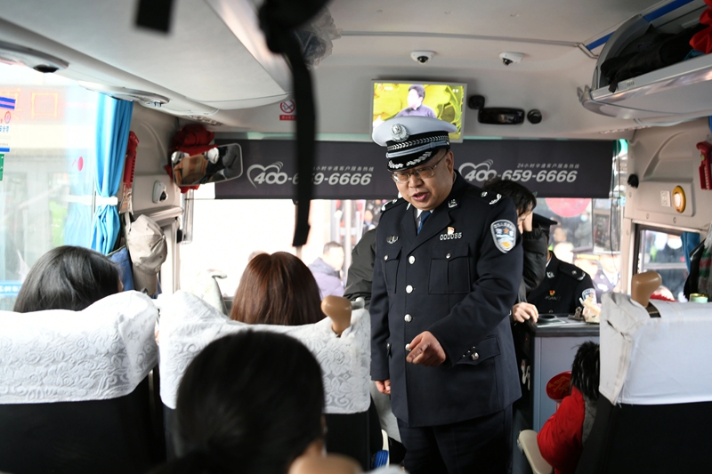 启动仪式结束后,出席嘉宾登上即将启程的客运班车,仔细检查车辆安全带、应急锤等安全设施,向驾驶人致以节日问候:“春运路上责任重大,一定要谨慎驾驶,平安送达每一位旅客!”同时,叮嘱车上乘客系好安全带,注意旅途安全。
