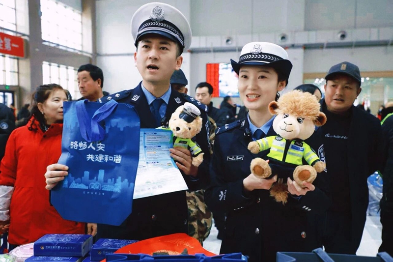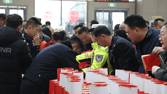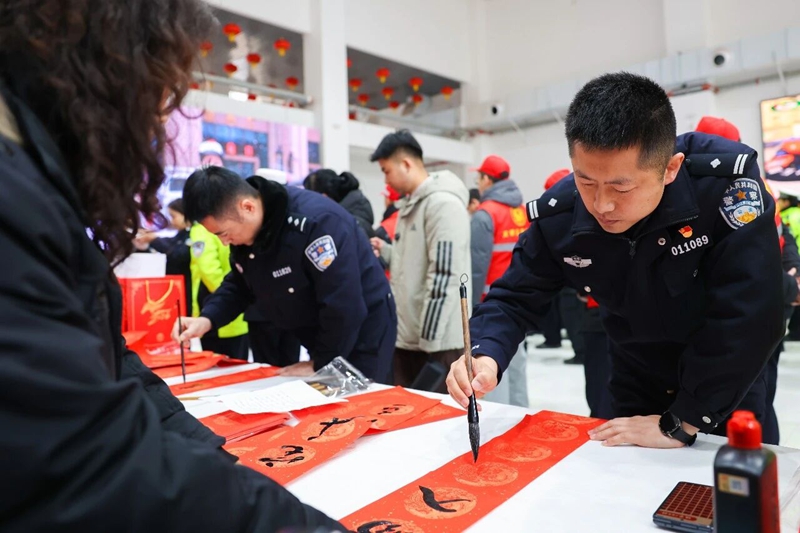 现场还特别设置了温馨的“平安送福”活动环节。来自警营的书法爱好者们挥毫泼墨,不一会儿,一副副满载祝愿的春联、一个个红红火火的“福”字便跃然纸上,将新春的暖意与平安的祈愿传递给在场的旅客和驾驶人。现场还向广大驾乘人员发放了《春运交通安全指南》宣传折页和特色宣传品,让美好的祝福与交通安全出行知识一路陪伴每位旅客平安回家。