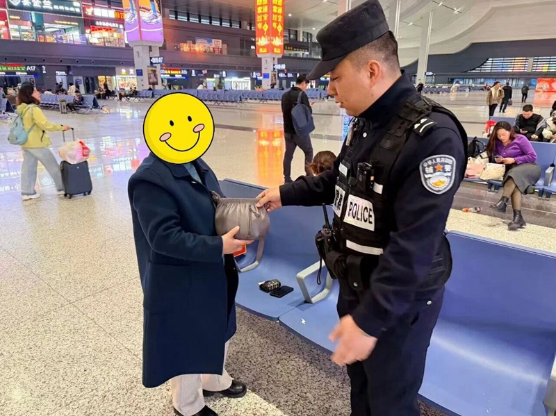 考虑到正值返程高峰,杨女士进出站不便,郭鹏成、张丁心当即带着手包直奔高铁候车大厅。“您核对一下,包内物品都在不在。”民警将手包递到杨女士手中。她颤抖着打开包,身份证、银行卡、现金、贵重物品……一件不少,完好无损!
