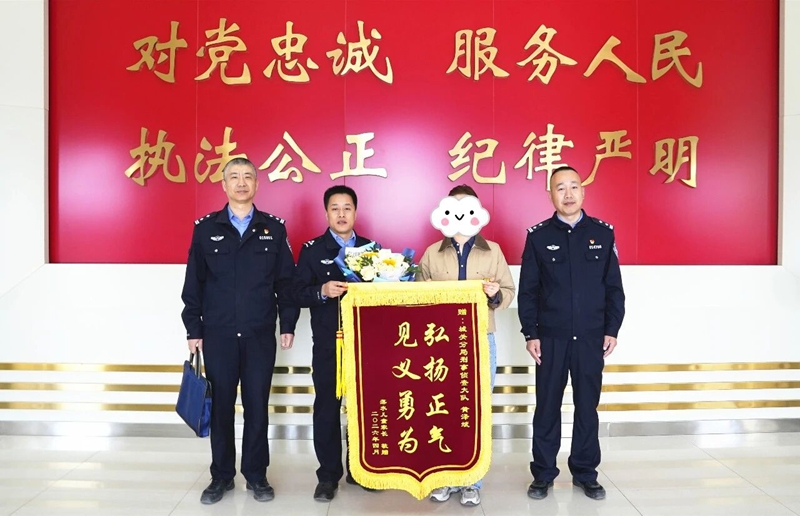 “当时脑子一片空白,孩子爸爸又不在身边。看到有人跳进湖里把孩子救出来,我特别感动,就想着一定要找到他,当面再谢谢他……” 4月15日,孩子父母专程来到城关分局,为黄泽斌送上鲜花和锦旗。