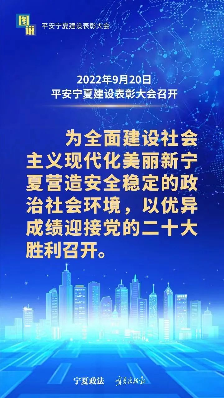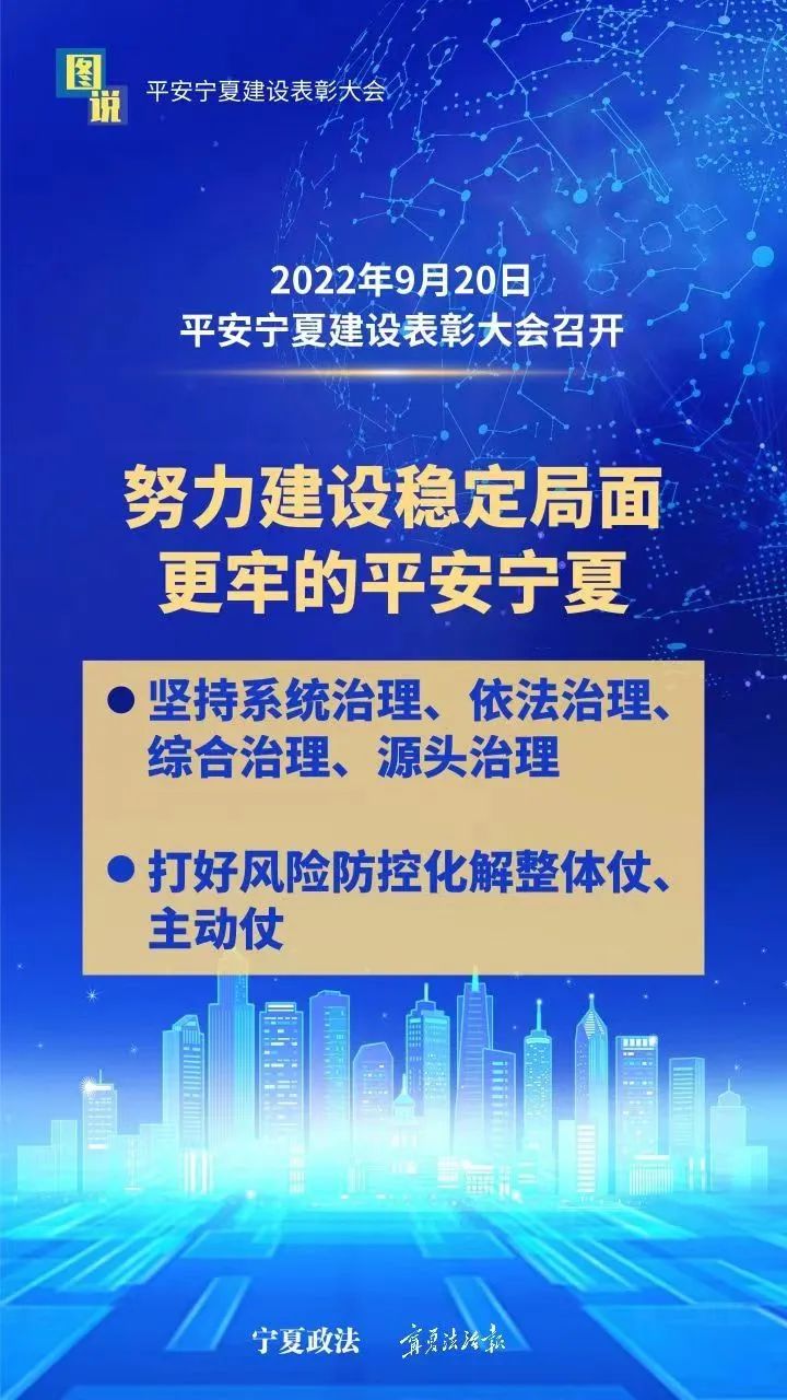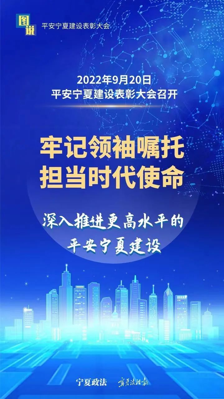 9月20日,平安宁夏建设表彰大会在银川举行。会议表彰2019—2020年度平安宁夏建设先进集体、个人,授牌命名2017—2020年度平安宁夏建设示范县,总结2017年以来平安宁夏建设成绩经验,部署推进更高水平的平安宁夏建设。