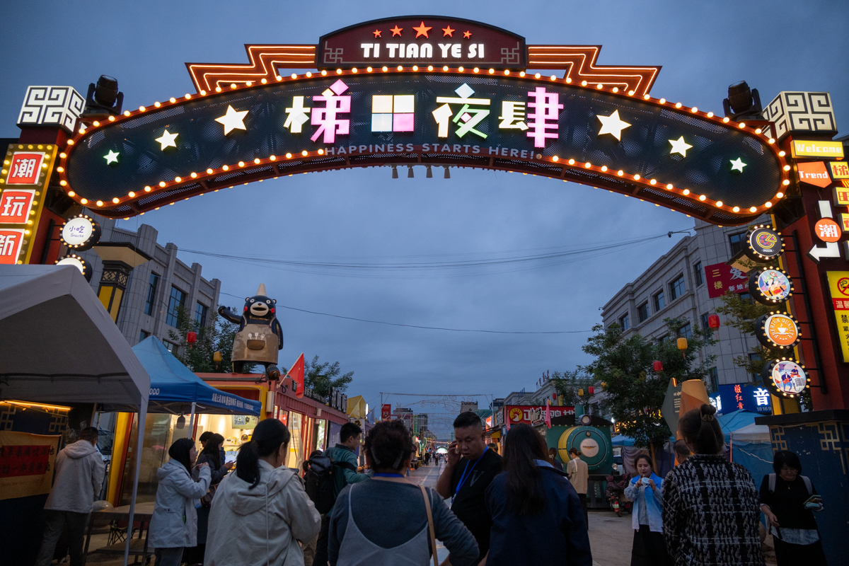 夜色渐晚,梯田夜肆街区的人多了起来。漫步到街区尽头,电子大屏上正播放着电影《热搜》。这是彭阳县司法局深化“法治+文化+夜经济”模式,连续两年推出“法治电影·纳凉夜市”主题普法活动的系列活动之一。