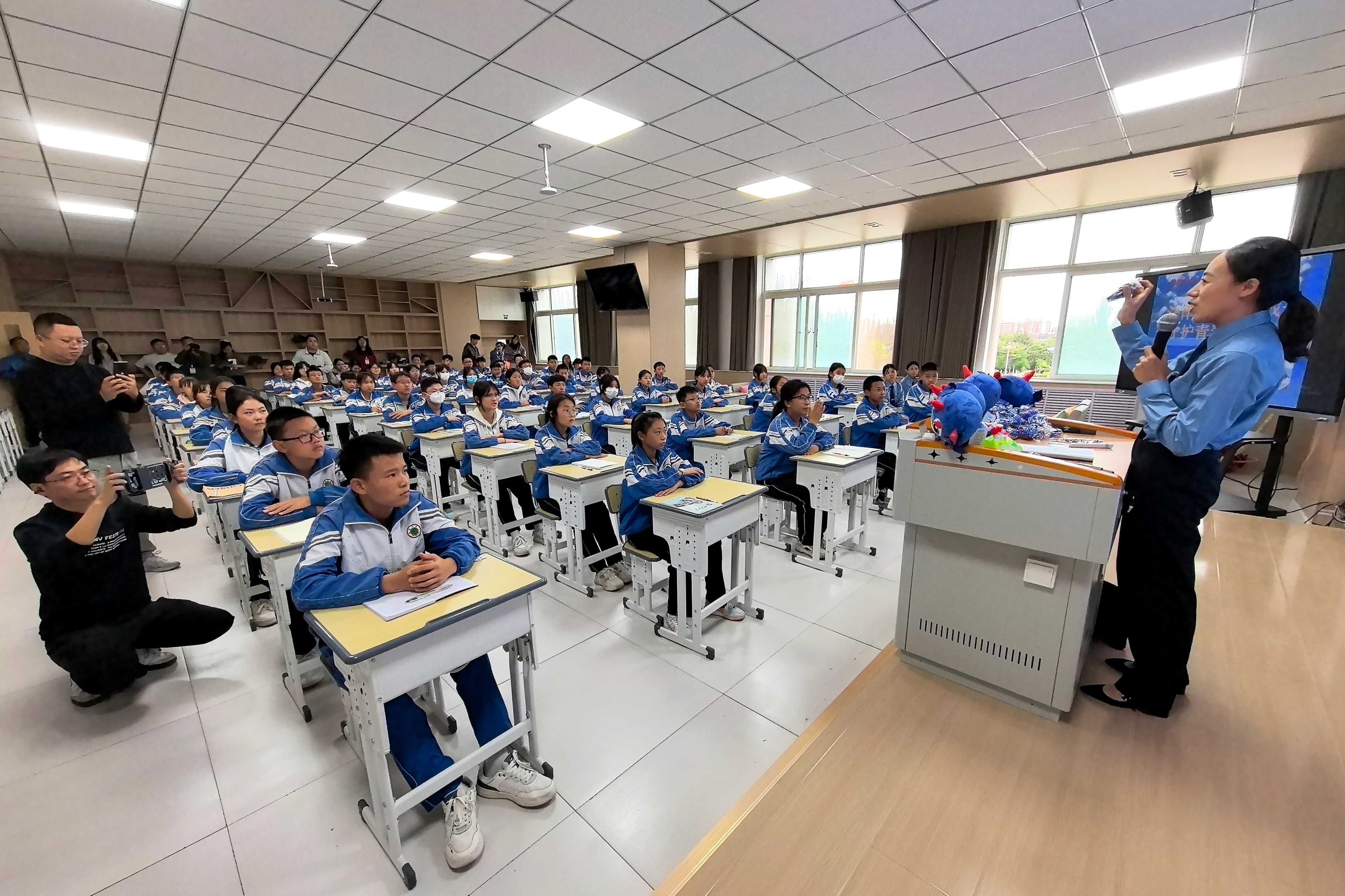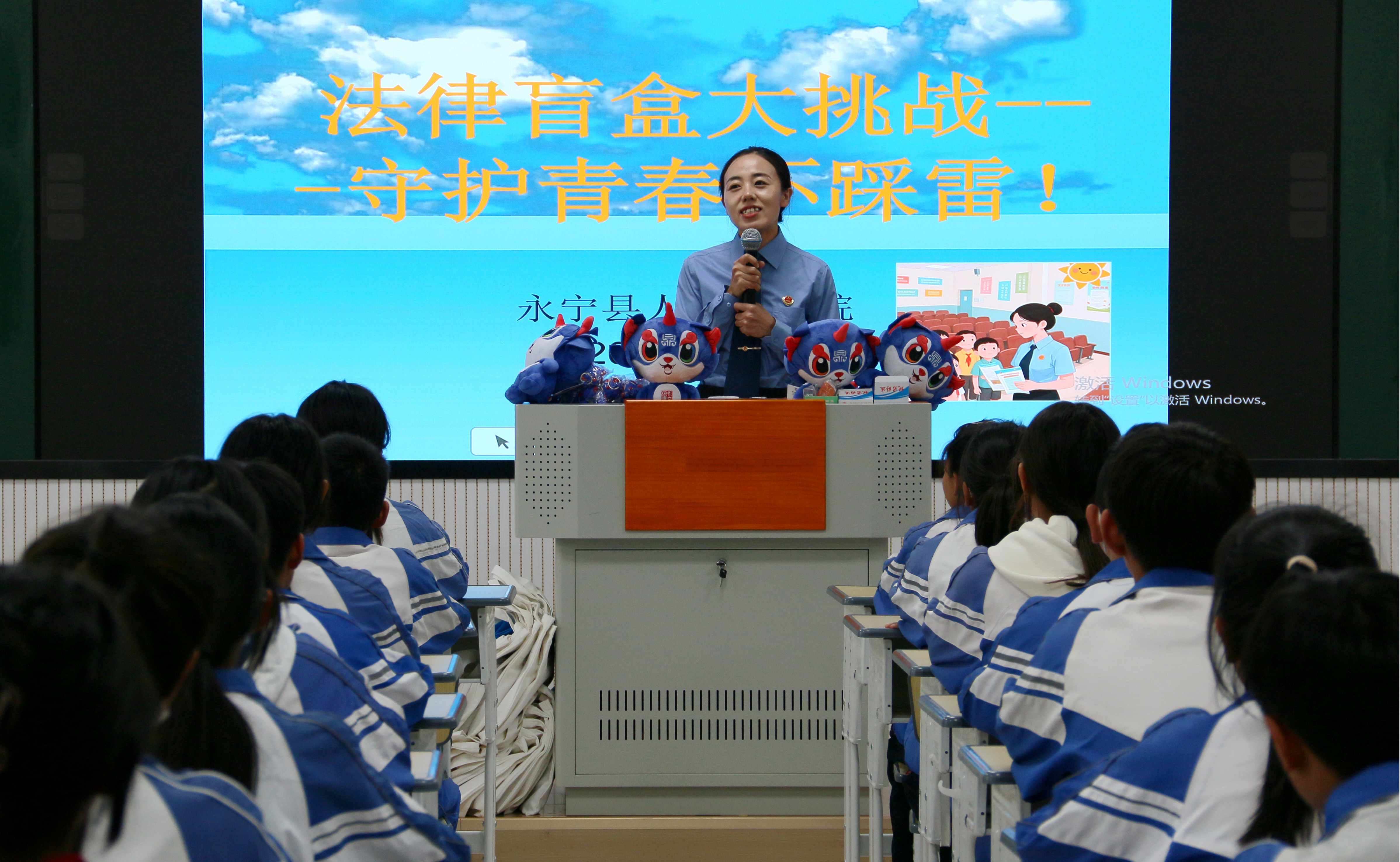 这不,当日下午,“丁丁热线”检察官便在永宁中学给孩子们上了一堂主题为“法律盲盒大挑战——守护青春不‘踩雷’”的法治公开课。