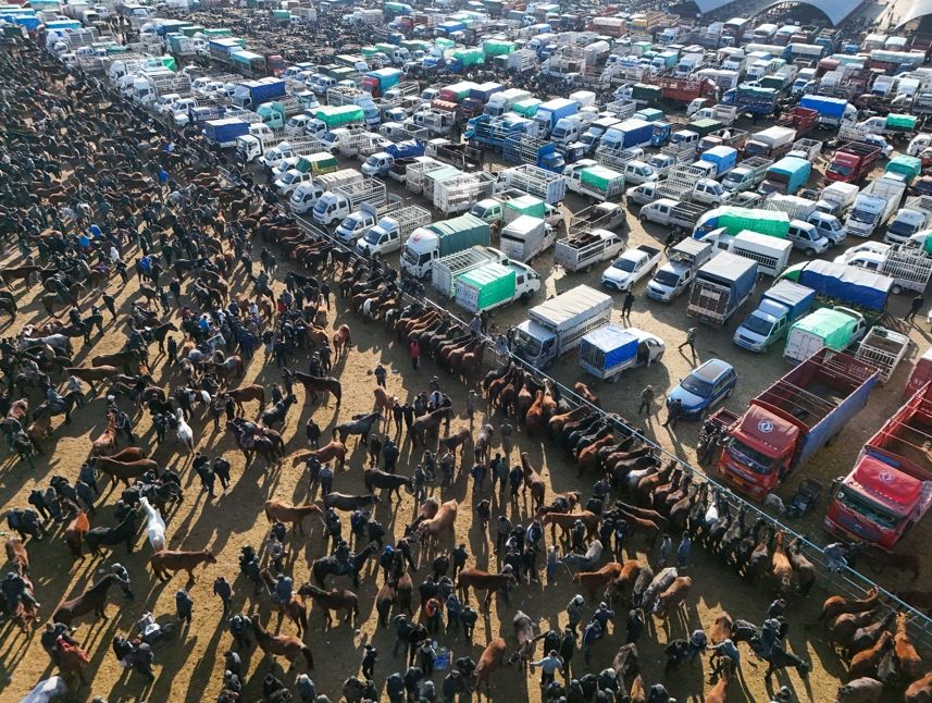 新疆创锦黄公农产品交易市场的马匹交易区 胡虎虎摄