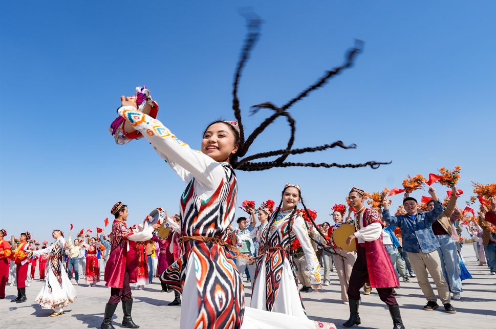 群众载歌载舞,喜迎新疆维吾尔自治区成立70周年 毕晓洋摄
