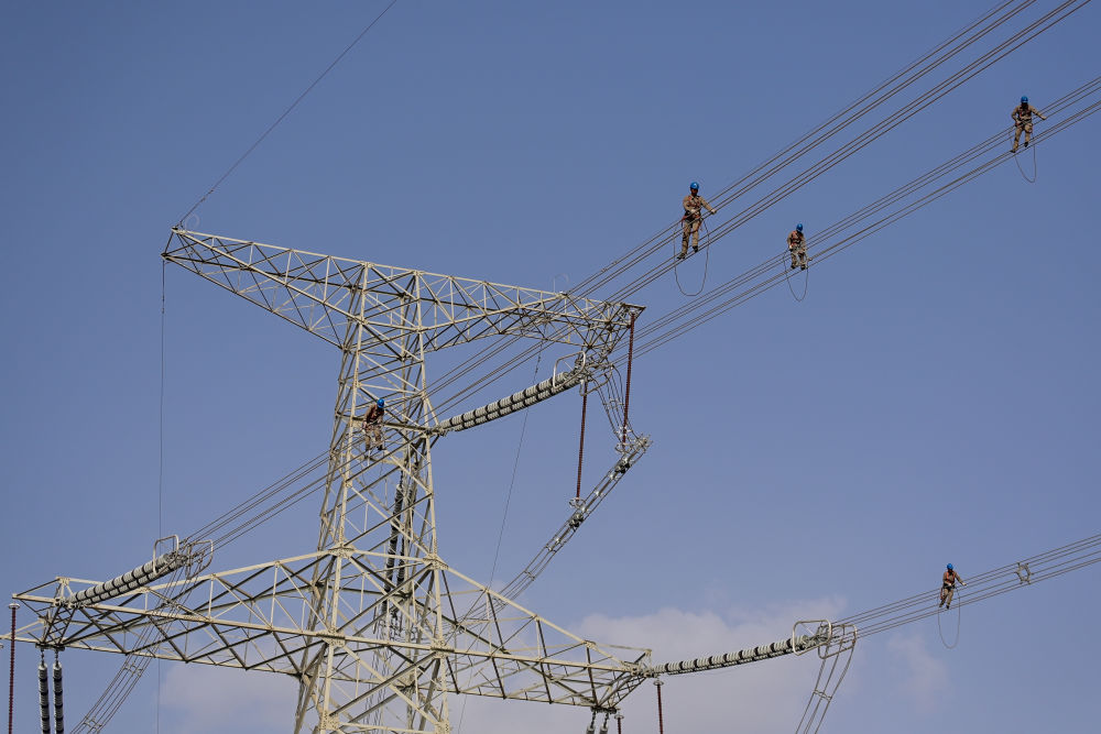 施工人员在且末-若羌750千伏线路开展走线消缺工作 丁磊摄