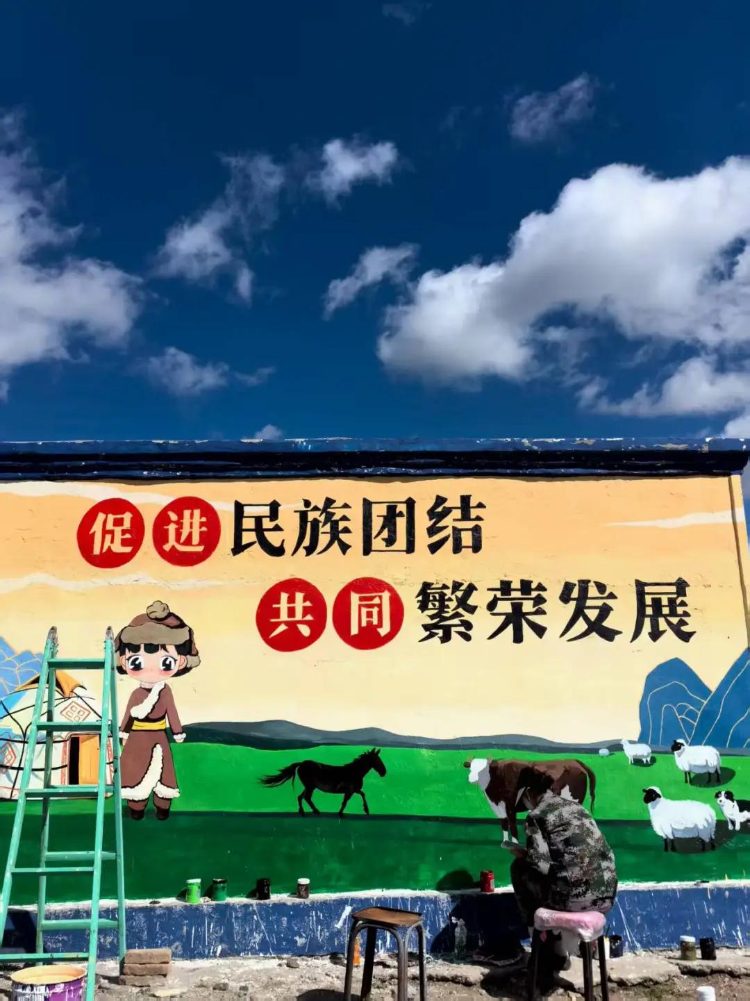 在这条边境线上,戍边文化作品不仅美化了边境点位的环境,更成为传承戍边精神的重要载体。老护边员们望着墙上的画作,不禁感慨道:“我们不会写、也不会画,我们的护边故事只能口口相传。现在这些年轻人用画笔把它们画下来,让戍边精神有了更鲜活的表达,这是一种新的传承,更是一份责任的延续。”