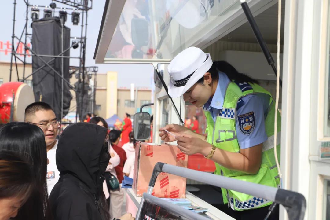 在积极开展宣传的同时,也全力做好现场秩序维护。民警通过定点值守与流动巡逻相结合的方式,实时关注现场动态,及时开展交通疏导,有效防范安全隐患,确保庆祝活动平稳有序进行。
