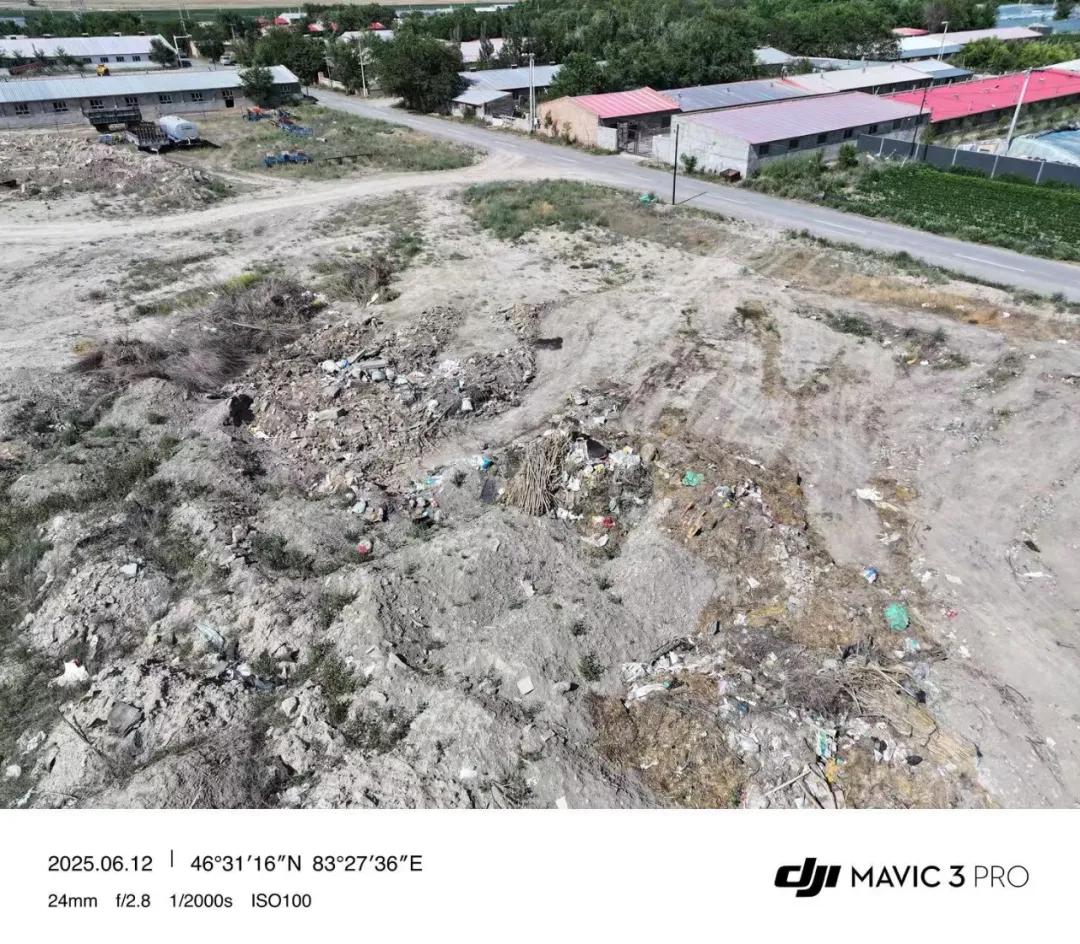 事件起因于一次高效的科技赋能实践。额敏垦区人民检察院干警在运用无人机开展常态化巡林工作时,通过高空视角清晰发现,一片面积达1000多平方米的土地被大量生活垃圾、建筑垃圾肆意侵占,如同健康的肌体上烙下触目惊心的“伤疤”,严重破坏了当地的生态风貌。
