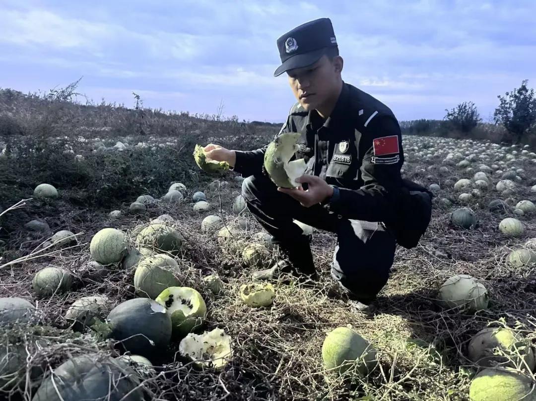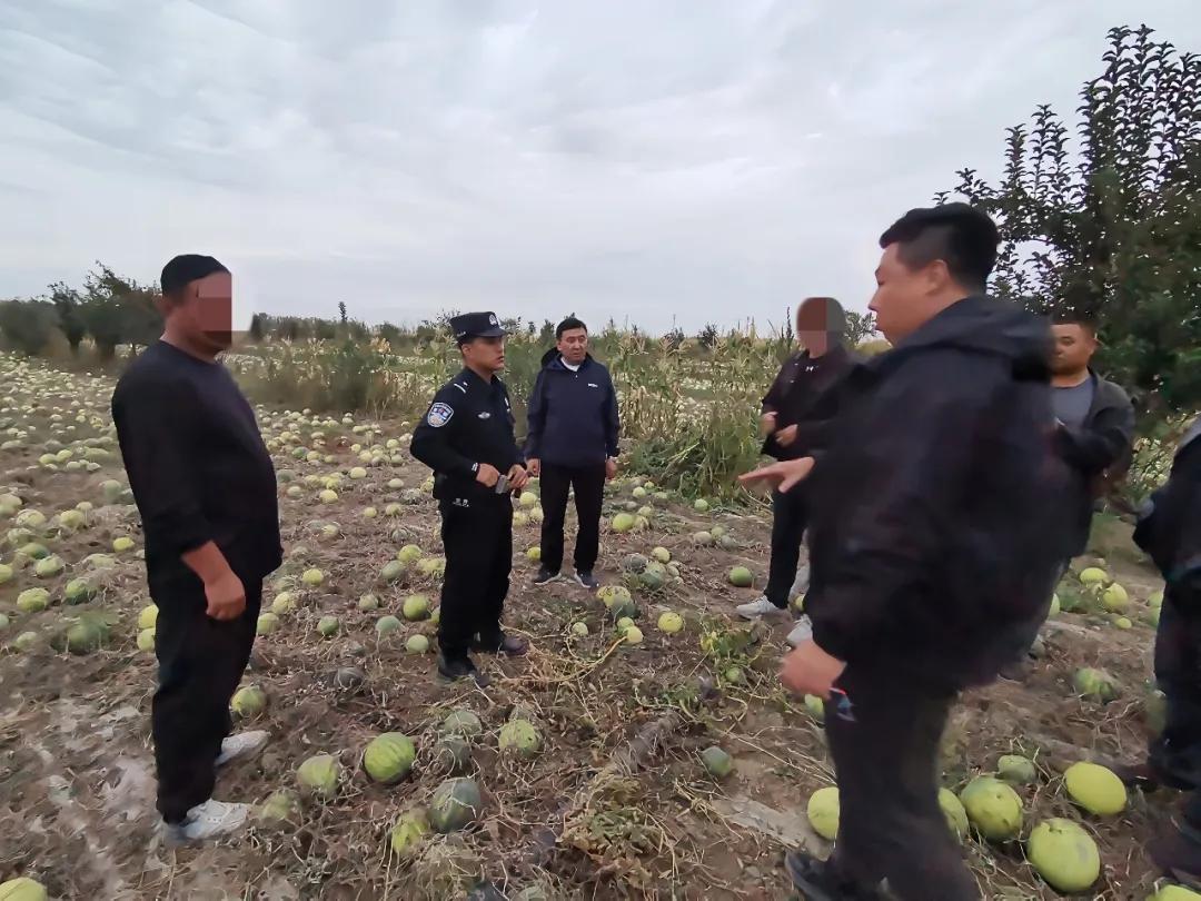 打瓜地头,民警一边安抚情绪激动的谢某,一边向巴某详细了解事情的经过;调解员则走进瓜田,仔细查看受损情况。经现场查看,部分打瓜已被啃食殆尽,一些表面完好的瓜也因踩踏面临变质。通过查看瓜的受损程度、估算剩余产量,结合种植成本、市场价格等因素,调解员对损失进行了初步评估。