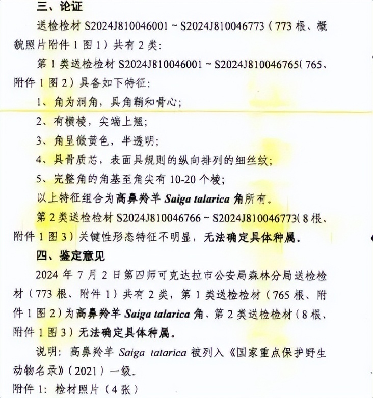 至案发时,该团伙共走私高鼻羚羊角1474根。经鉴定,所有涉案动物制品均为国家一级保护野生动物(高鼻羚羊)的角,该物种被列入《濒危野生动植物种国际贸易公约》(CITES)附录II,同时也位列我国《国家重点保护野生动物名录》(2021版)一级,严禁以任何形式进行非法贸易。