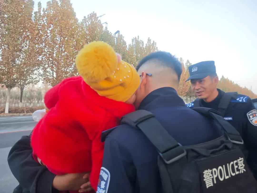 大伙忙完,孩子咿咿呀呀好像想说点啥,刘文文把耳朵靠近,谁知他冷不丁的在警察叔叔脸上亲了一下。孩子的亲昵举动,一下子温暖了在场的所有人。刘文文接过孩子抱着,开心的表示:“娃娃太乖了,这是一个奶香奶香的吻啊!”