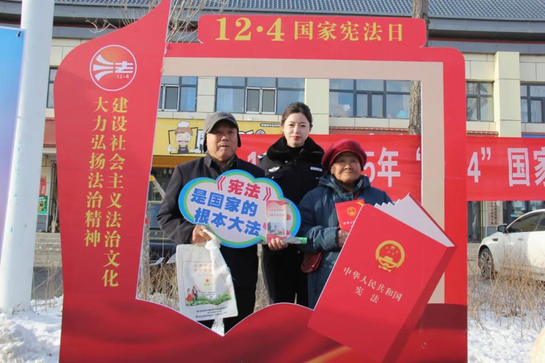 12月1日,第九师一六三团司法所联合多部门举办宪法宣传活动,当日,放置在集市上的“法治大转盘”围满职工群众,大家排队转动转盘答题,答对者均收到奖品。活动中,工作人员为职工详细解答各类法律疑问,志愿者们在人群中发放宪法宣传册与装有法律常识折页的“法治礼袋”。一些群众手持宪法宣传册,在“我与宪法合个影”区域拍照打卡。