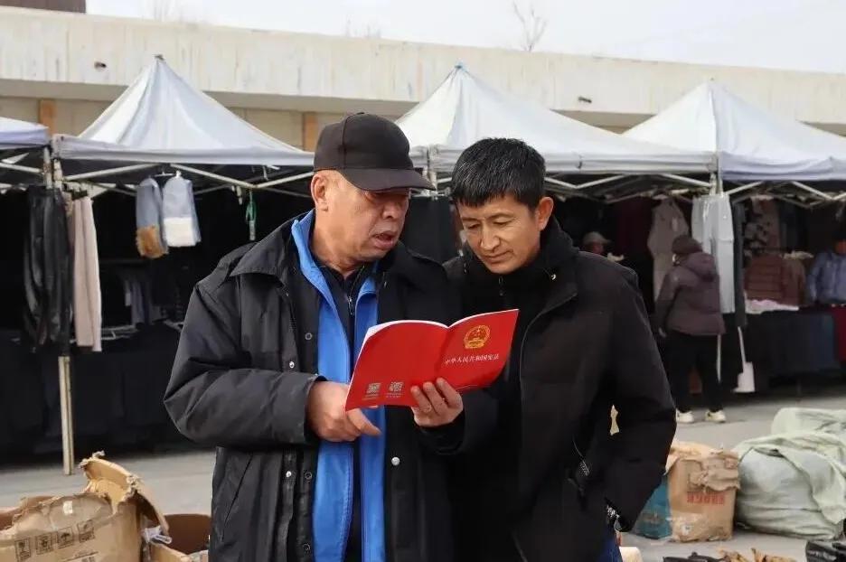 为弘扬宪法精神,筑牢团场居民的法治信仰,11月28日,第五师九十一团司法所紧抓团场集市人流密集的有利时机,将一场“带露珠、冒热气”的宪法宣传教育活动直接送到群众身边。他们以“面对面讲解、心贴心交流”的方式,让抽象的法律条文化作寻常烟火里的行为准则,将法治的种子撒进百姓心田。