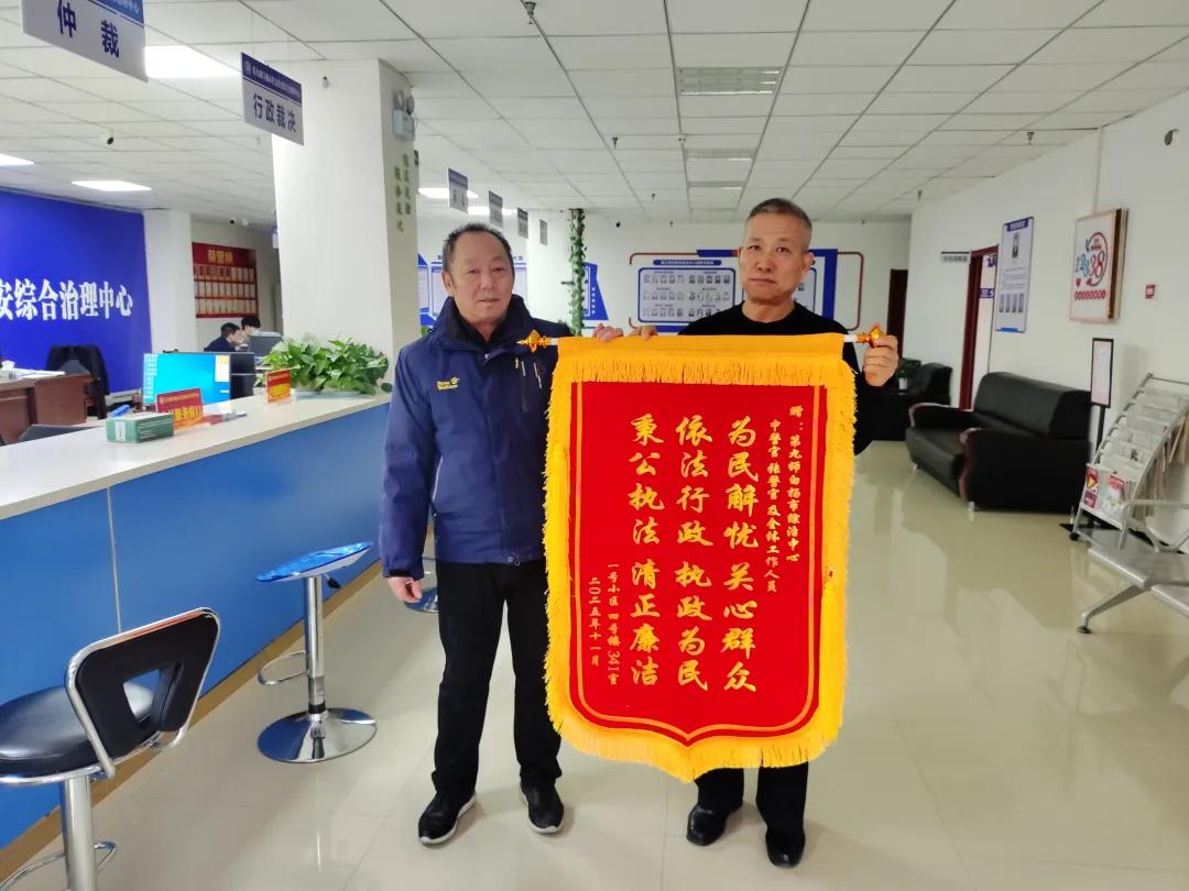 一周后,吕某再次来到综治中心,将一面印有“为民解忧、关心群众,依法行政、执法为民,秉公执法、清正廉洁”的锦旗送到综治中心工作人员手中,对工作人员表示感谢。