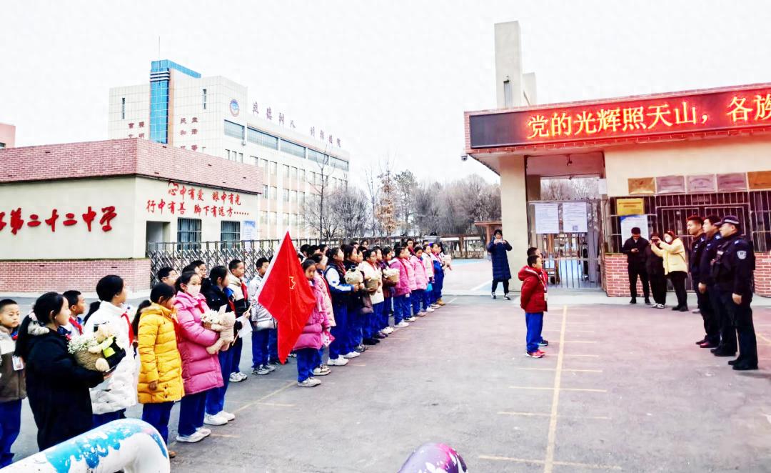 当冬日的寒意悄然弥漫,一句清脆的问候,如同一束温暖的光,穿透寒冷,直抵人心。12月1日周一清晨九点半,石河子第二十二中学的升旗仪式刚刚落下帷幕,校门口便奏响了一曲充满童真与敬意的乐章——一阵清脆整齐的童声“警察叔叔好!”如银铃般响起,瞬间驱散了冬日的丝丝寒意。