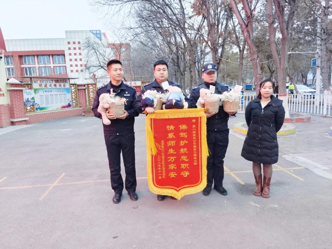 这样的温情时刻,源于民辅警们日复一日、年复一年的扎实工作。东三路派出所的护校安园工作,就像一张无形的大网,覆盖了辖区内的11所幼儿园、小学及中学,形成了常态化、全方位的守护体系。这背后,离不开民辅警们无论寒暑、风雨无阻的坚守,他们用自己的实际行动,诠释着责任与担当的深刻内涵。而今天孩子们的一声“警察叔叔好”,家长的一面锦旗、一句贴心话,就像冬日里的暖阳,正是对这种日常奉献最温暖、最真挚的回应。