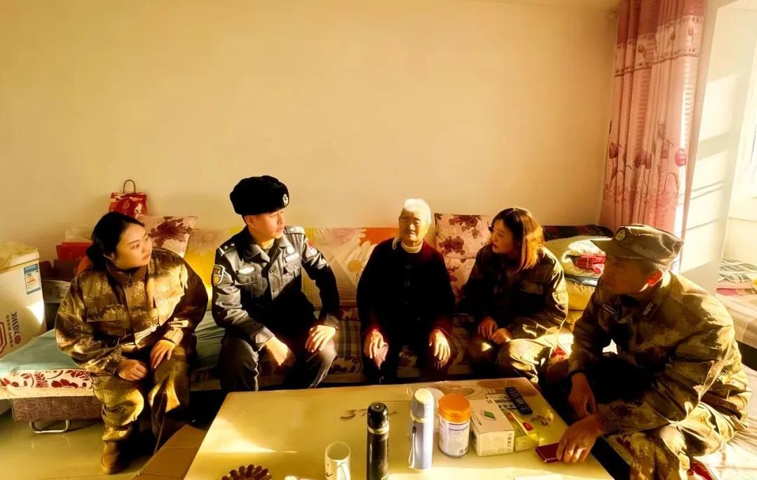 几人围坐在老人身边,民警冯波波给老人讲述着两个儿子在边境线上工作的点点滴滴,老人听得专注,仿佛每一句描述都能让她离儿子更近一些。
