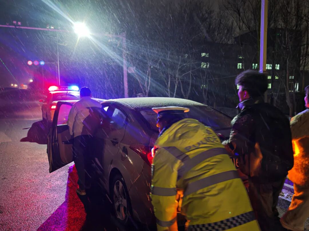 为最大限度降低冰雪对道路交通安全的影响,图木舒克垦区公安局闻雪而动、迅速响应,第一时间启动恶劣天气应急处置预案,全警动员、全员在岗,迅速吹响“战风雪、保畅通、护平安”集结号。警灯划破雪幕,警车穿行街头,一抹抹藏蓝与荧光黄逆风而行,奔赴辖区各主干道、桥梁涵洞、团场连队,用脚步丈量平安,用坚守温暖寒冬。