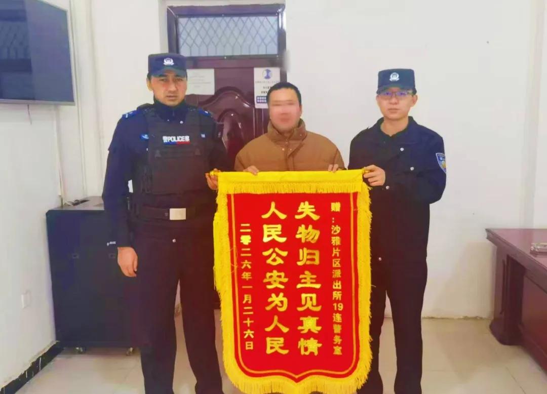 无独有偶。1月26日上午,沙雅片区派出所有群众报警手机丢失,向19连警务室寻求帮助。警务室民警熟练地运用手机定位功能,仅用半小时即在辖区某家店铺门口一侧的路边找到了手机,归还失主。失主当日便送来锦旗致谢。
