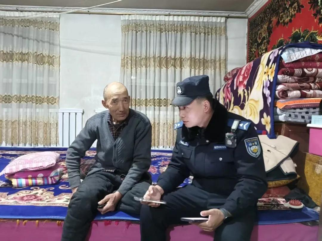 1月27日,夜幕初临,托喀依乡喀尔墩村,塔河派出所民警接到电诈预警而紧急叩响了一户独居老人的门。