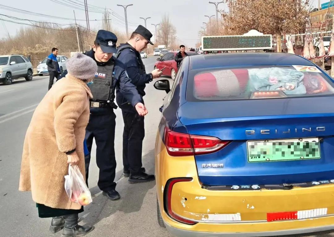 1月27日,沙雅片区派出所巡逻民警在巡逻时,发现路边有一名身形伛偻、焦急观望的老人,询问得知她忘带现金又不会使用手机导致打不到车回家。