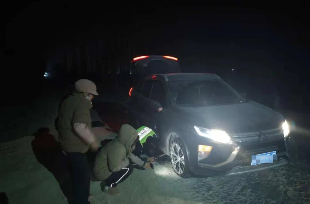 1月27日,G580线140公里处,阿拉尔垦区交管大队巡逻交警发现道路前方一名男子正艰难地推行一辆小汽车,还不时抹着额头的汗水。