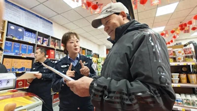 兵团第六师五家渠垦区公安局民警通过“扫楼行动”向辖区居民宣传电信网络诈骗的危害。受访单位供图