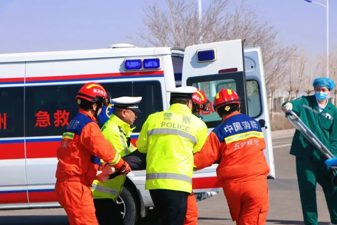 顷刻间,多部门救援力量闻讯而动,一场与时间赛跑的生命营救全面展开。消防救援人员携带破窗、拆解等专业装备跑步入场,迅速解救“被困伤员”。