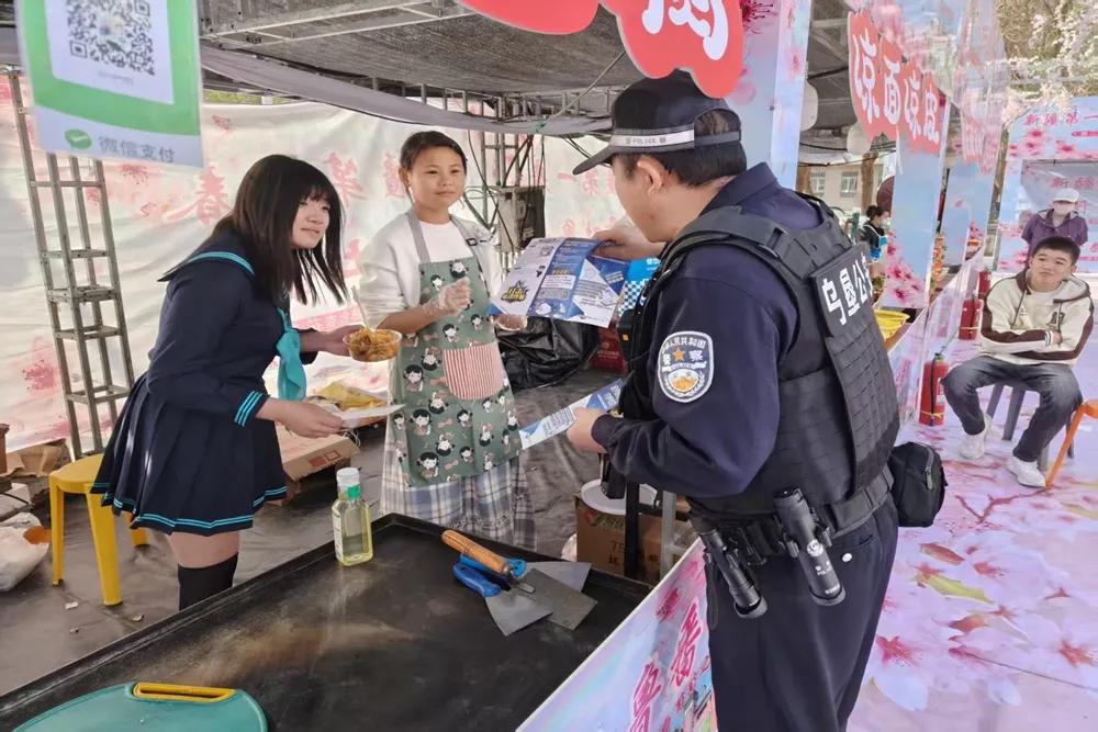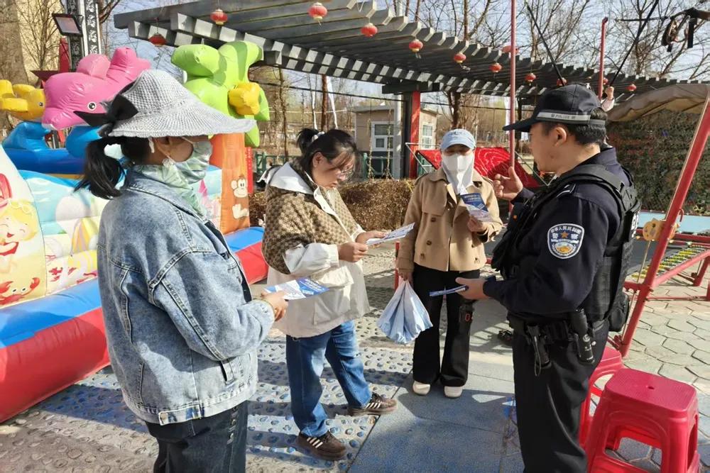 在做好秩序维护的同时,交河西派出所将安全防范宣传阵地前移至花海之中。民辅警在入口、观景平台、休息区等游客密集处设立“反诈宣传岗”,将安保值守与反诈宣传有机结合。