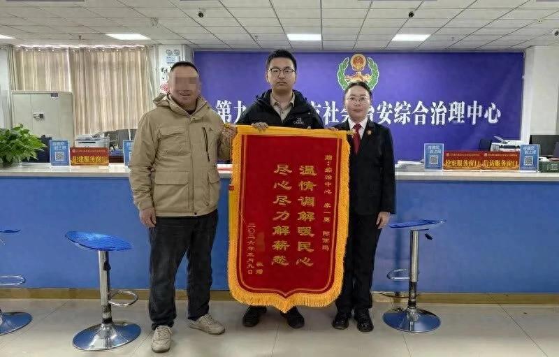“这笔钱可算是拿到了,真的太谢谢你们了。”近日,在新疆生产建设兵团第九师白杨市综治中心接待大厅,王某将一面印有“温情调解暖民心尽心尽力解薪愁”的锦旗送到法官手中,向法官表示感谢。