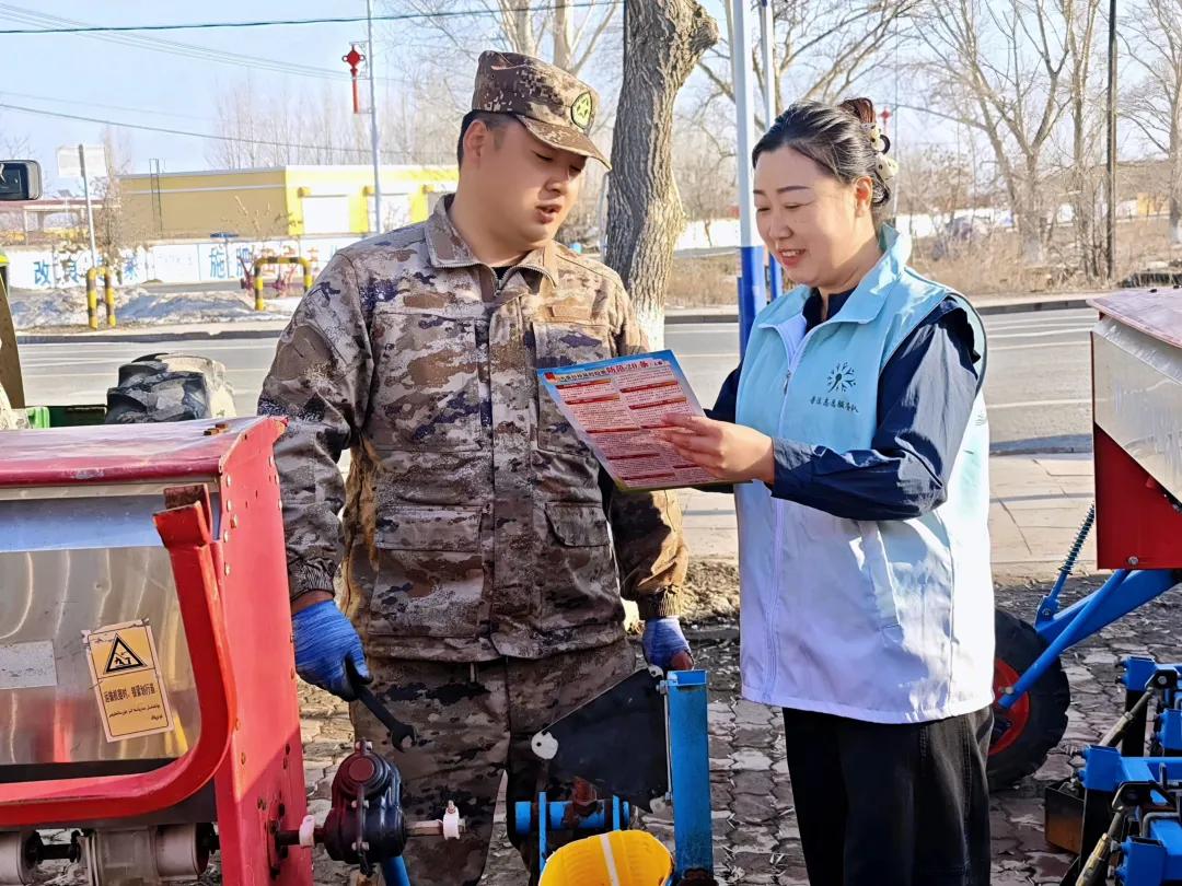 “咱们的农机检修好了吗?农用车出门可不能违法载人!不能酒驾醉驾,开车不喝酒,喝酒不开车!”春耕时节,农用车辆来往频繁,志愿者们通过“案例+法条+实操”的方式,把法律条文转化为职工群众听得懂、用得上、记得住的实用技能。