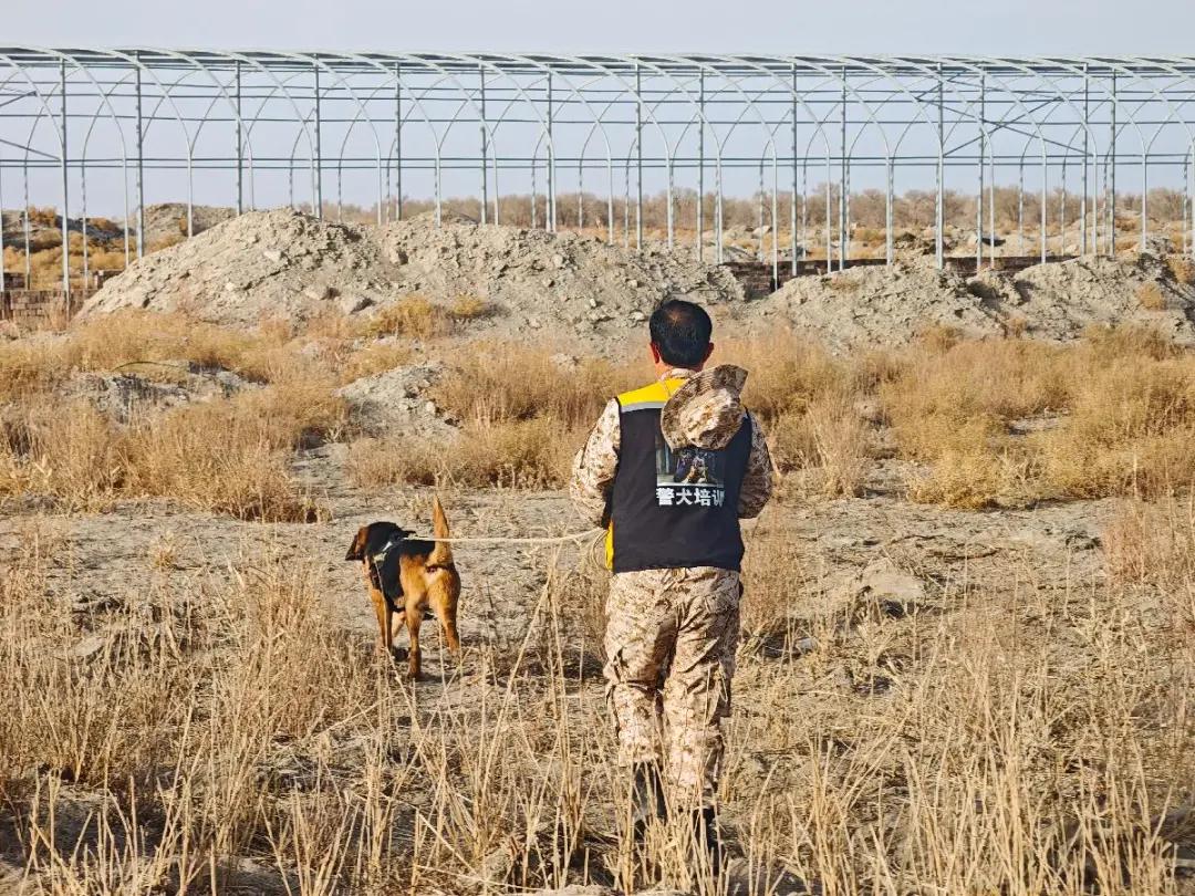 在废旧房屋区域的东北方,趁着夜色可以看到,戈壁滩上还交错着几棵胡杨树,兵地公安机关民辅警相互加油鼓劲,手持手电筒向着黑夜照射,口中不停呼喊老人的名字,迈着疲惫的脚步向戈壁深处走去,绝不放过任何一个角落。突然,若羌县公安局警犬“憨憨”兴奋地冲着远处吠叫起来,随后引导着民辅警加速向前方冲去。约五公里处,警犬停在了原地,并发出了明确的指引信号。